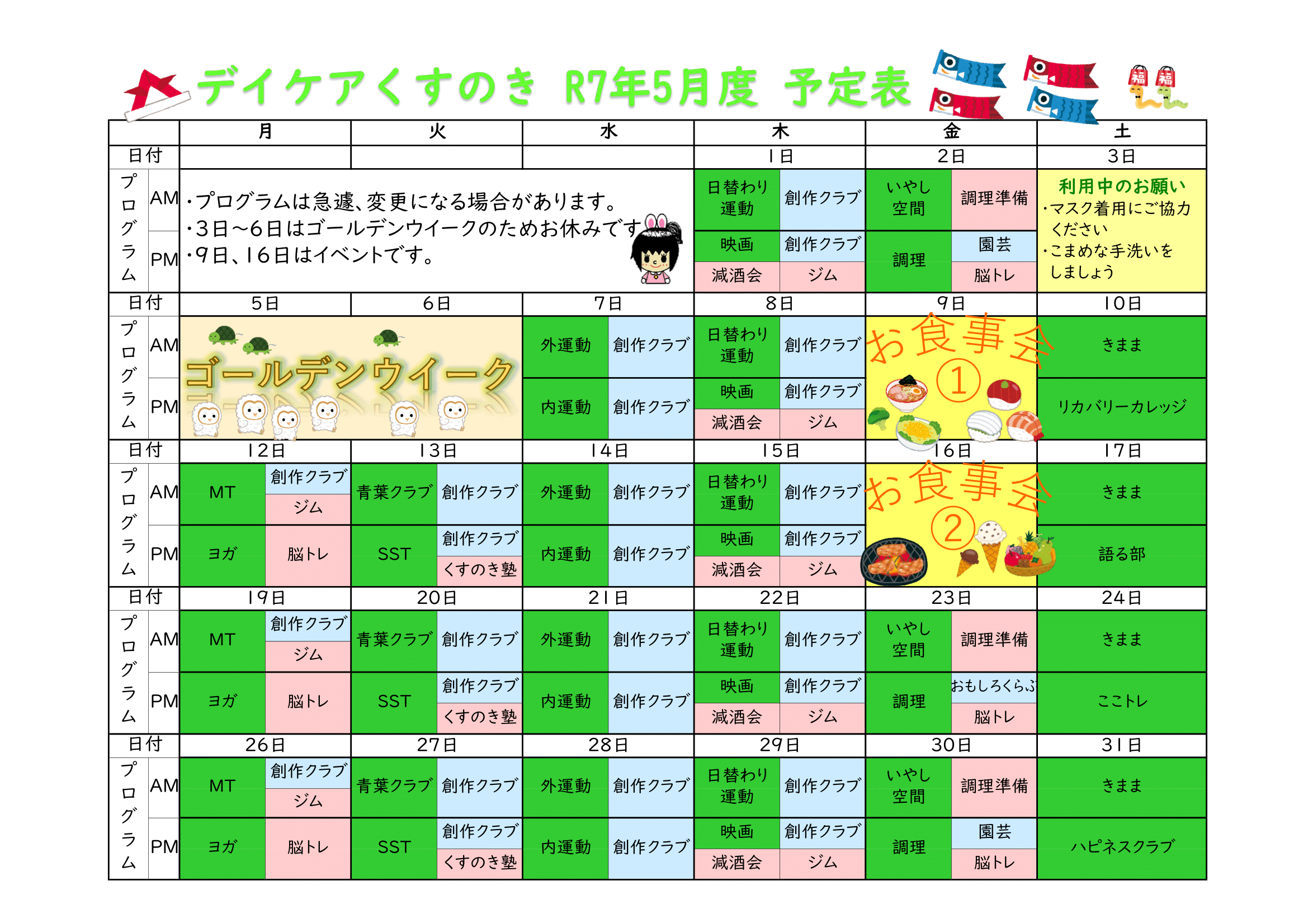 | 外出プログラム | 農耕、散歩、施設見学など |