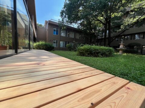 中庭通路や新館一階に、飯能市の特産品である西川材を使用したベンチやテーブル、 ウッドデッキの他、アナウンス用のスピーカーを導入致しました。 ヒノキの良い香りがし、リラックス効果も期待されます。 また、デイケア棟一階にもスピーカーを導入致しました。 快適にご利用いただけるよう環境整備に努めてまいりますので、お気軽にご利用ください。 外来待合室の中庭通路を動画にてご案内させていただきます。